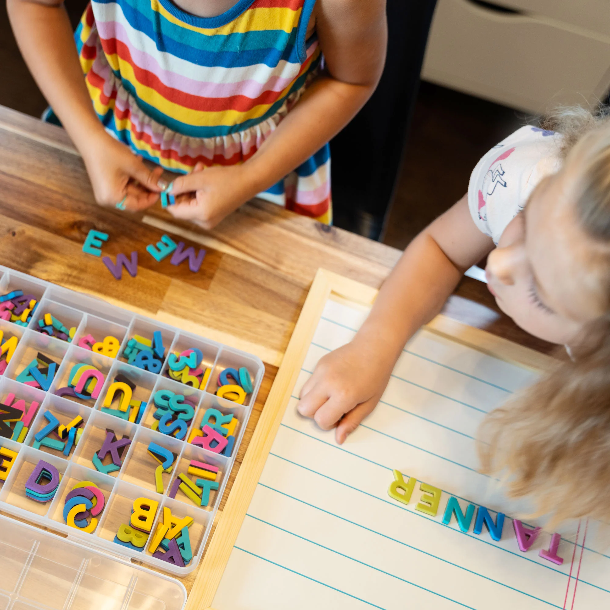 Get ready to rule the school with this 15x15 magnetic, dry-erase noteboard slate! These single-sided whiteboard slates will bring back memories of practicing penmanship and waiting in line to sharpen your pencils! The easy-to-clean, dry-erase surface with wide-ruled lines is reminiscent of a page torn out of a notebook. They’re the perfect companion for our alphabet magnets but can also be used with traditional dry-erase markers. Perfect for educational use or for displaying your favorite quotes around your home or classroom!